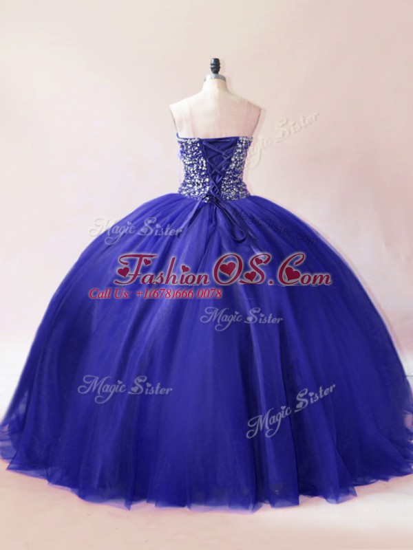 Home >  Quinceanera Dresses >  In Stock Quinceanera Dresses > High Class Royal Blue Lace Up 15th Birthday Dress Beading Sleeveless Floor Length
