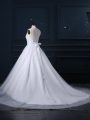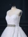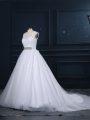High Class Scoop Sleeveless Bridal Gown Brush Train Beading and Lace White Tulle