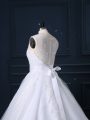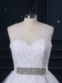 Home >  Wedding Dresses >  Low Cost Wedding Dresses > High Class Scoop Sleeveless Bridal Gown Brush Train Beading and Lace White Tulle