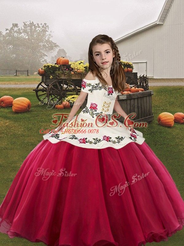 Home >  Special Occasion Dresses >  2019 Little Girl Pageant Dresses > High Class Sleeveless Organza Floor Length Lace Up Pageant Gowns For Girls in Coral Red with Embroidery