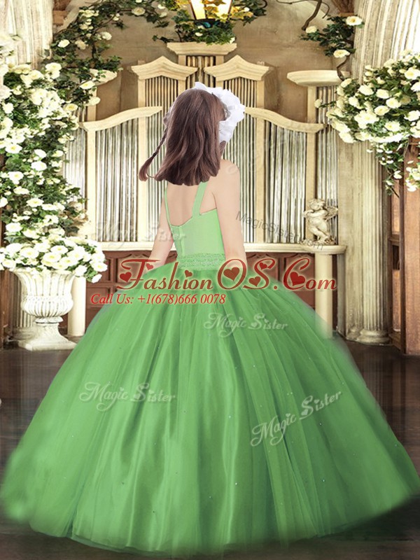 High Class Teal Zipper Scoop Beading Pageant Gowns For Girls Tulle Sleeveless