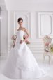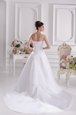 High Class White Satin Zipper Sweetheart Sleeveless With Train Wedding Dresses Brush Train Beading and Appliques