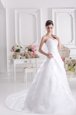 Home >  Wedding Dresses >  Beautiful Wedding Dresses > High Class White Satin Zipper Sweetheart Sleeveless With Train Wedding Dresses Brush Train Beading and Appliques