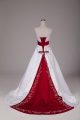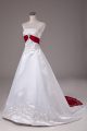 High Class White Wedding Gowns Strapless Sleeveless Brush Train Lace Up