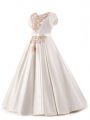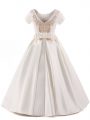 High Class White Zipper Little Girls Pageant Gowns Appliques Short Sleeves Floor Length