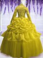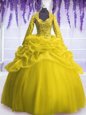 Home >  Quinceanera Dresses >  Clearance Quinceanera Dresses > High Class Yellow Long Sleeves Floor Length Sequins and Pick Ups Zipper 15 Quinceanera Dress