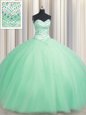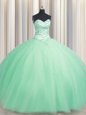Home >  Quinceanera Dresses >  Fast Delivery Quinceanera Dresses > High End Apple Green Tulle Lace Up Sweetheart Sleeveless Floor Length Vestidos de Quinceanera Beading