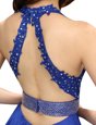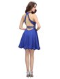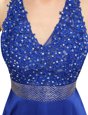 Home >  Prom Dresses >  Unique Prom Dresses > High End Empire Prom Dress Royal Blue V-neck Chiffon Sleeveless Mini Length Criss Cross