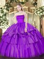 High End Floor Length Eggplant Purple 15 Quinceanera Dress Strapless Sleeveless Zipper