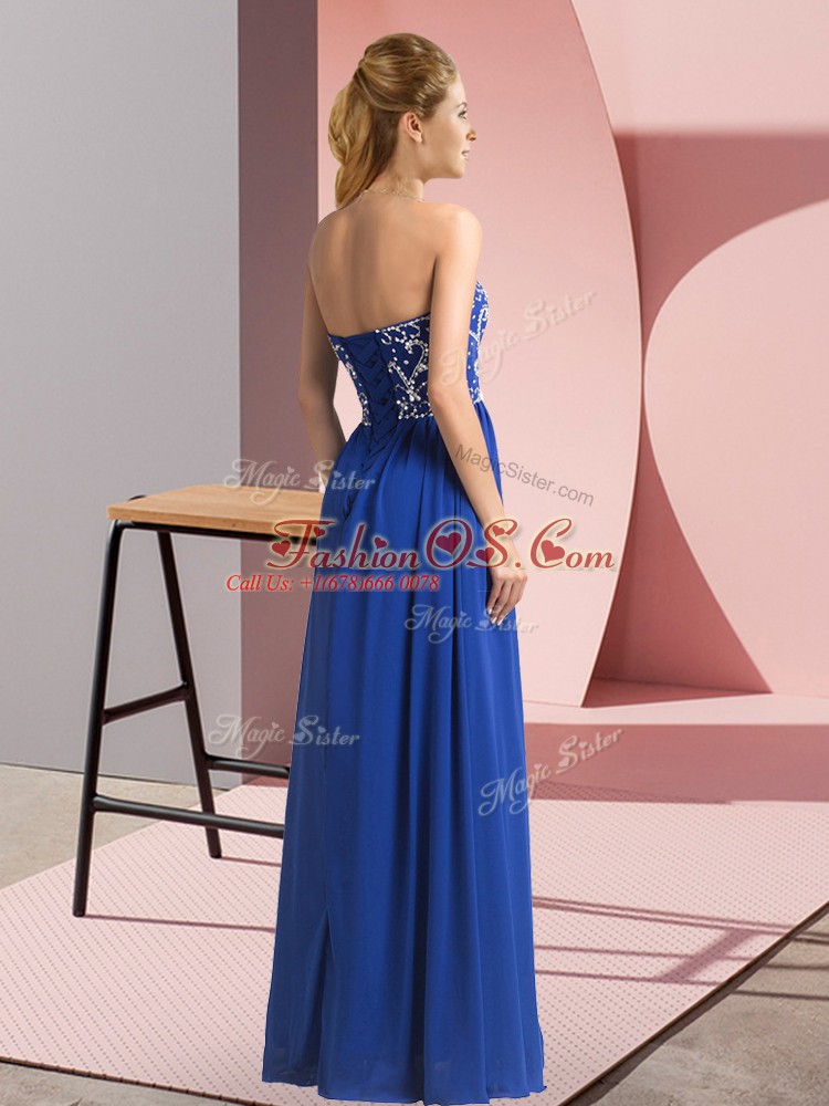 High End Floor Length Lace Up Evening Dress Fuchsia for Prom and Party with Beading