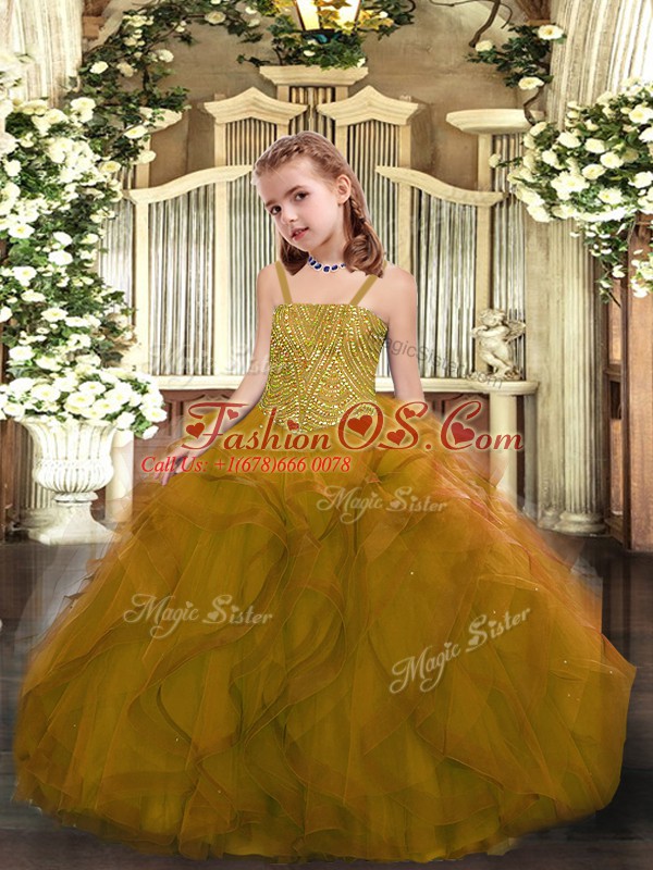 Home >  Special Occasion Dresses >  Lovely Little Girl Pageant Dresses > High End Floor Length Olive Green Little Girls Pageant Gowns Straps Sleeveless Lace Up