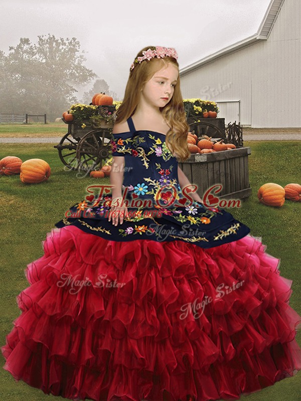 Home >  Special Occasion Dresses >  2019 Little Girl Pageant Dresses > High End Floor Length Red Kids Pageant Dress Straps Sleeveless Lace Up