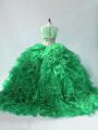 High End Green Quinceanera Dress Scoop Sleeveless Brush Train
