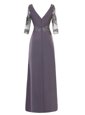 Home >  Prom Dresses >  Fashionable Prom Dresses > High End Grey V-neck Neckline Beading and Appliques and Ruching Prom Dresses Long Sleeves Zipper