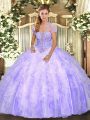 High End Lavender Ball Gowns Appliques and Ruffles Quinceanera Gowns Lace Up Tulle Sleeveless Floor Length