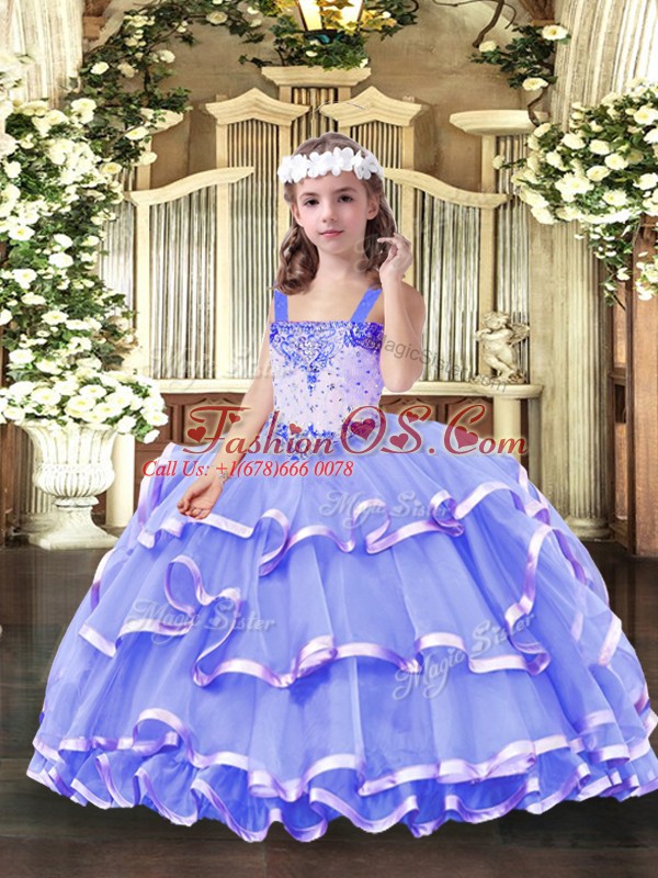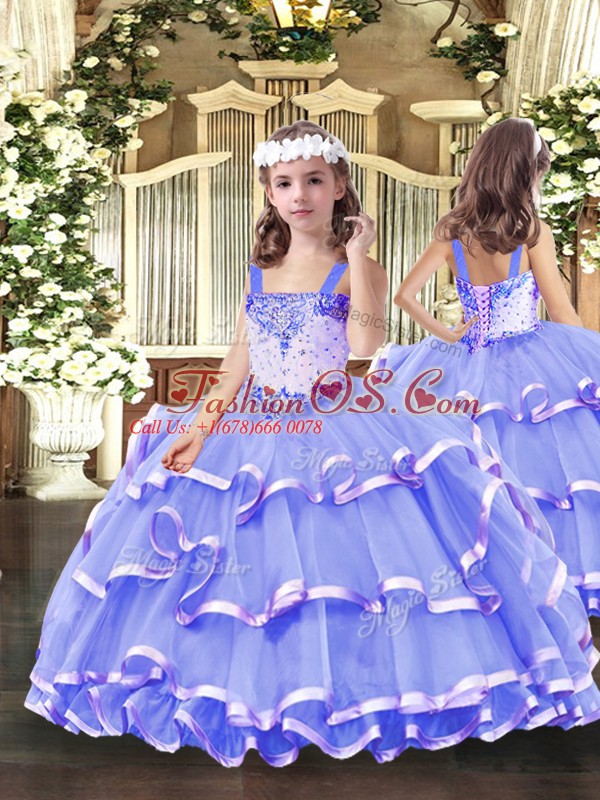 High End Lavender Straps Neckline Beading and Ruffled Layers Kids Formal Wear Sleeveless Lace Up
