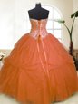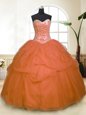 Home >  Quinceanera Dresses >  Luxurious Quinceanera Dresses > High End Orange Zipper Sweetheart Sequins and Pick Ups Quince Ball Gowns Tulle Sleeveless