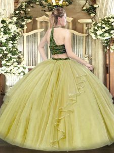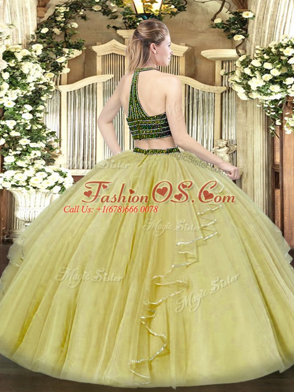 Home >  Quinceanera Dresses >  Detachable Quinceanera Skirts > High End Organza Halter Top Sleeveless Zipper Beading and Ruffles Ball Gown Prom Dress in Rust Red