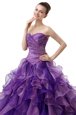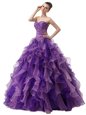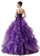 Home >  Quinceanera Dresses >  Cheap Quinceanera Dresses > High End Purple Lace Up Sweetheart Beading and Ruffles and Ruching Quinceanera Dresses Organza Sleeveless