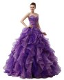 High End Purple Lace Up Sweetheart Beading and Ruffles and Ruching Quinceanera Dresses Organza Sleeveless