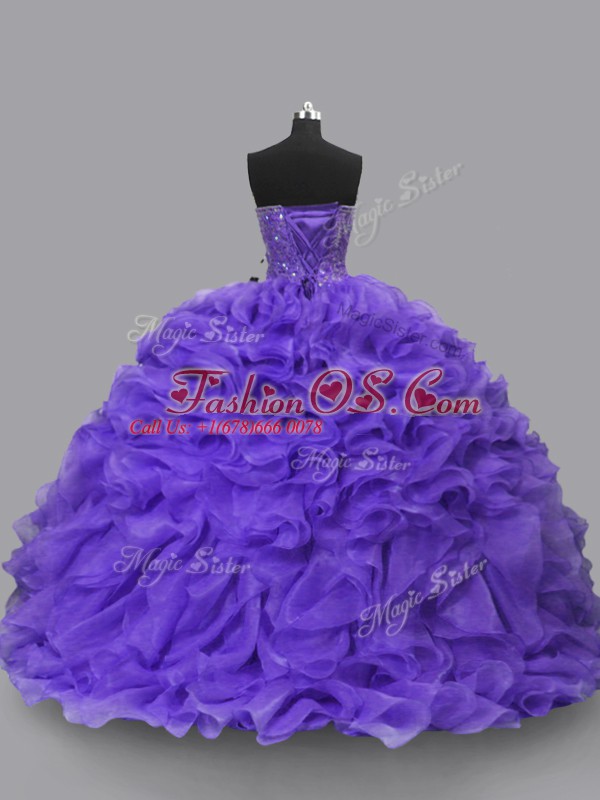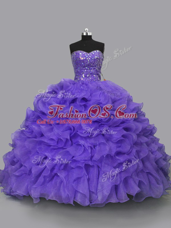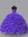 High End Purple Sleeveless Organza Lace Up Quinceanera Dresses for Sweet 16 and Quinceanera