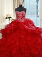 Home >  Quinceanera Dresses >  Sweet 16 Dresses > High End Red Ball Gowns Beading and Ruffles 15 Quinceanera Dress Lace Up Organza Sleeveless Floor Length