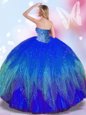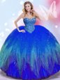 High End Royal Blue Ball Gowns Beading 15th Birthday Dress Lace Up Tulle Sleeveless Floor Length