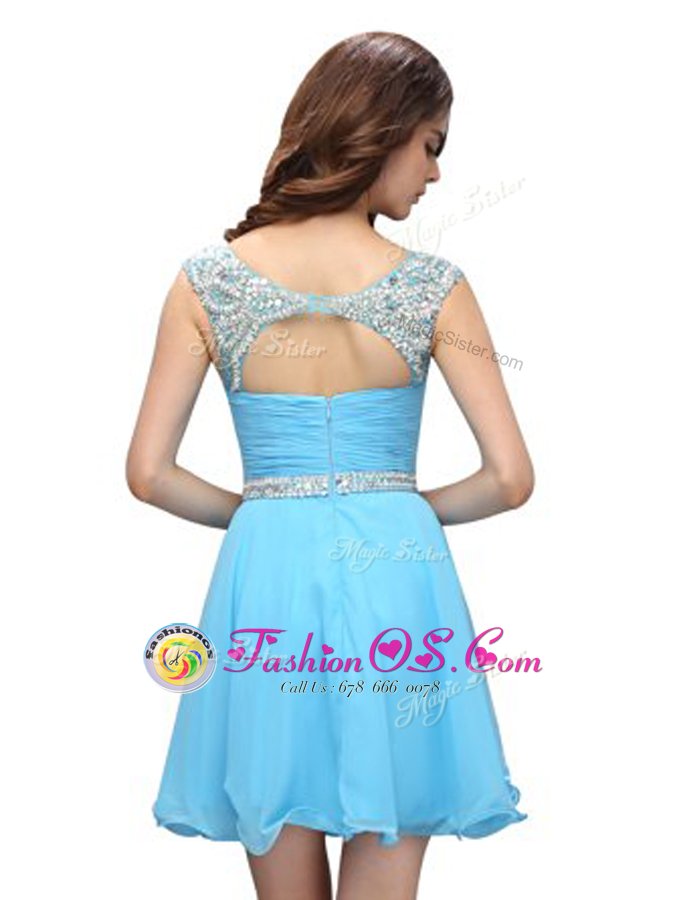 High End Scoop Lavender Column/Sheath Beading Prom Evening Gown Zipper Chiffon Sleeveless Mini Length