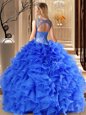 High End Scoop Sleeveless Lace Up Floor Length Beading and Ruffles 15th Birthday Dress