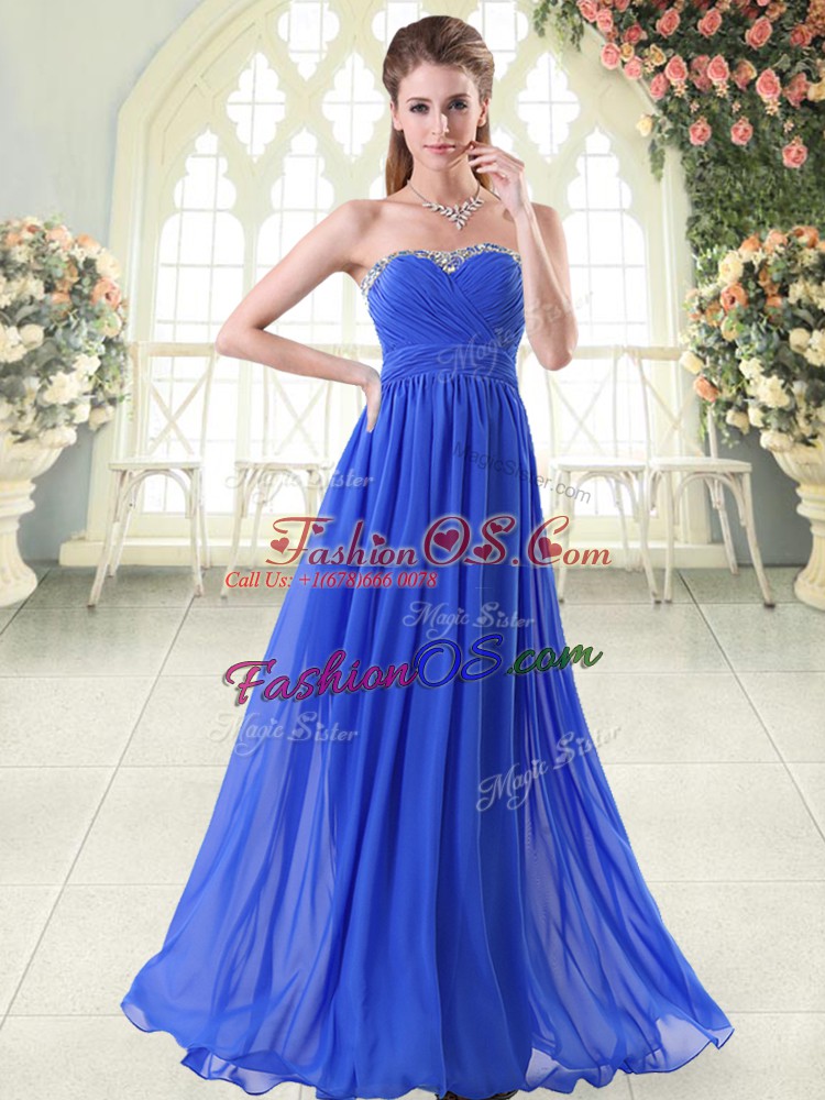 High End Sleeveless Chiffon Floor Length Zipper Homecoming Dress in Royal Blue with Beading