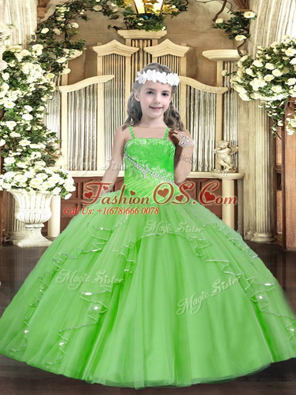 High End Sleeveless Floor Length Beading and Ruffles and Sequins Lace Up Kids Pageant Dress with