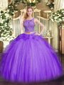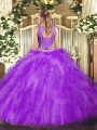 High End Sleeveless Tulle Floor Length Lace Up Quinceanera Gown in Lavender with Beading and Ruffles