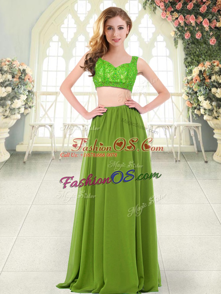 High End Straps Sleeveless Chiffon Casual Dresses Beading and Lace Zipper