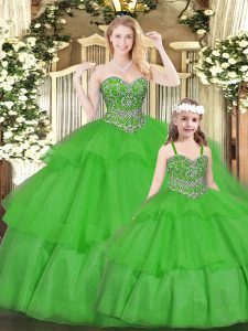 High End Sweetheart Sleeveless Organza Quinceanera Gowns Beading and Ruffled Layers Lace Up