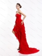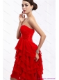 High Low Ruffled Layers Beading Red Prom Dresses for 2015