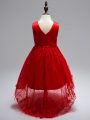 High Low Wine Red Kids Pageant Dress Tulle Sleeveless Appliques