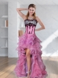 High Low Zebra Printed Prom Dress with Pick Ups and Appliques