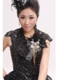 Dramatic and glamorous! This gorgeous black dress will leave you a last long wonderful memory for sure! The subdued bodice is encrusted with a high neck, dainty shining sequins fabric. The sassy sleeves just looks like a matching jacket, while the chic sash is so unique that can conture your natural figure.The knee-length skirt looks so cute. Zipper up closure finishes the amazing look.