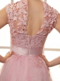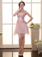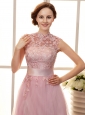 High Neck Pink Tulle Lace Decorate Bodice Brand New Custom Made Prom Gowns