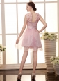 Home >  Special Occasion Dresses >  Celebrity Dresses > High Neck Pink Tulle Lace Decorate Bodice Brand New Custom Made Prom Gowns