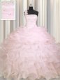 Home >  Quinceanera Dresses >  Perfect Quinceanera Dresses > High Quality Baby Pink Ball Gowns Organza One Shoulder Sleeveless Beading and Ruffles Floor Length Zipper Quinceanera Gown