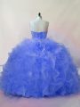 High Quality Blue Beading and Ruffles Quinceanera Gowns Lace Up Organza Sleeveless Floor Length