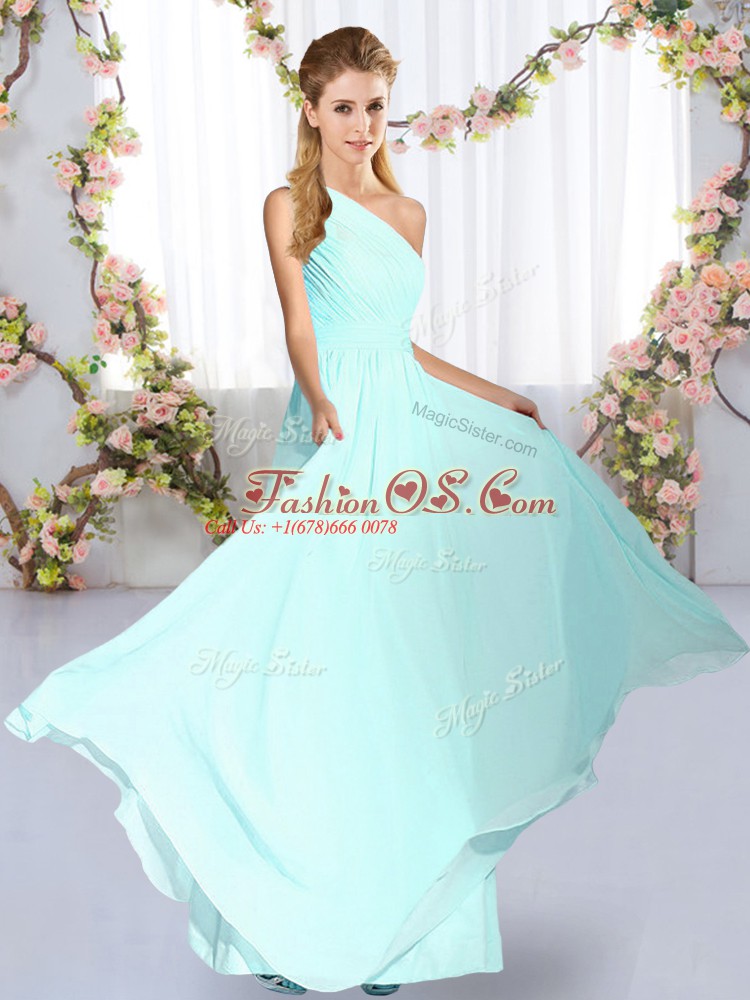 High Quality Blue Lace Up One Shoulder Ruching Bridesmaid Dresses Chiffon Sleeveless