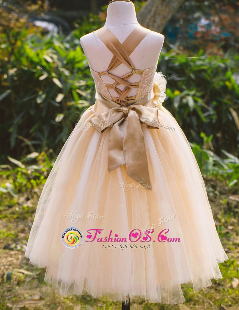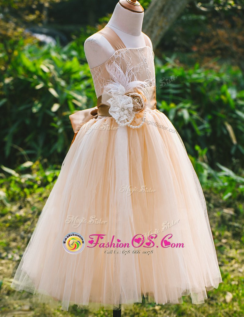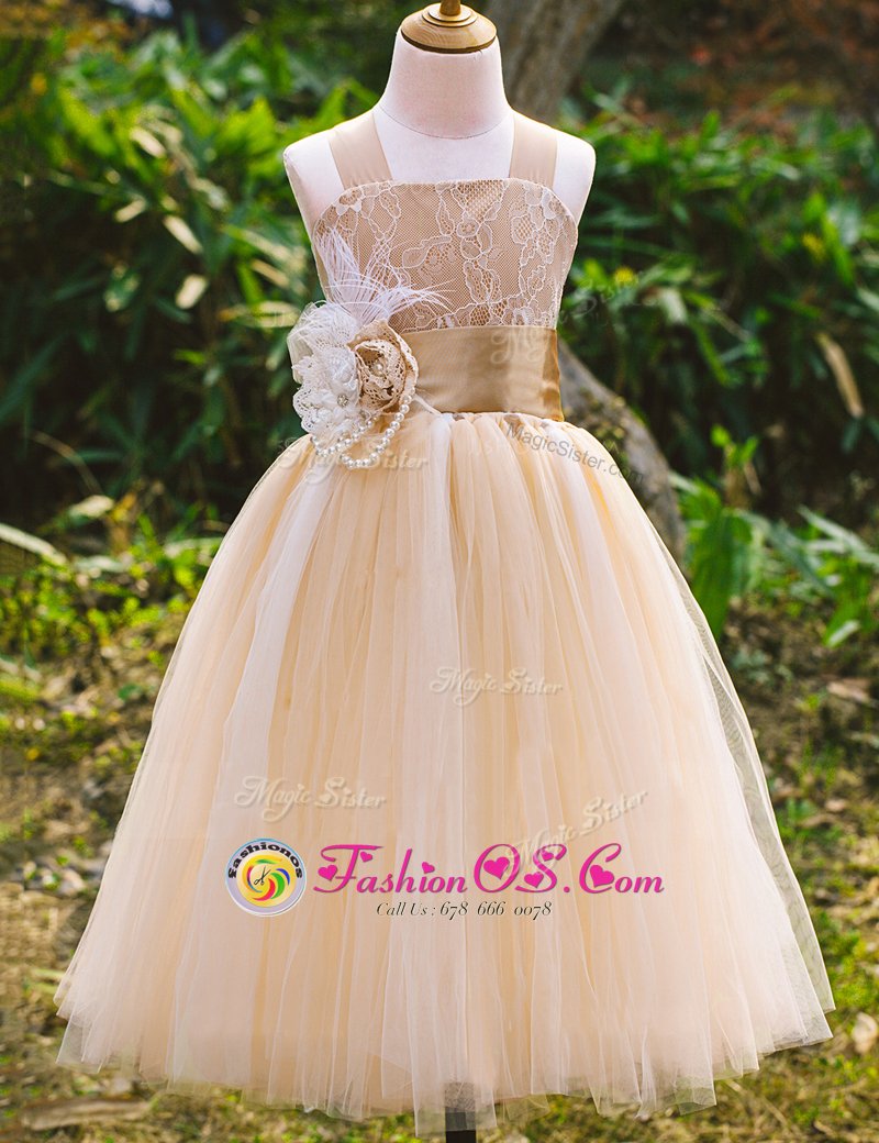 High Quality Champagne Sleeveless Lace Floor Length Toddler Flower Girl Dress