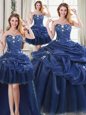 Home >  Quinceanera Dresses >  Detachable Quinceanera Skirts > High Quality Four Piece Navy Blue Sleeveless Floor Length Appliques Lace Up Vestidos de Quinceanera
