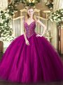 Home >  Quinceanera Dresses >  Popular Quinceanera Dresses > High Quality Fuchsia Sleeveless Tulle Lace Up Ball Gown Prom Dress for Military Ball and Sweet 16 and Quinceanera