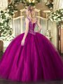 High Quality Fuchsia Sleeveless Tulle Lace Up Ball Gown Prom Dress for Military Ball and Sweet 16 and Quinceanera