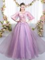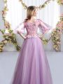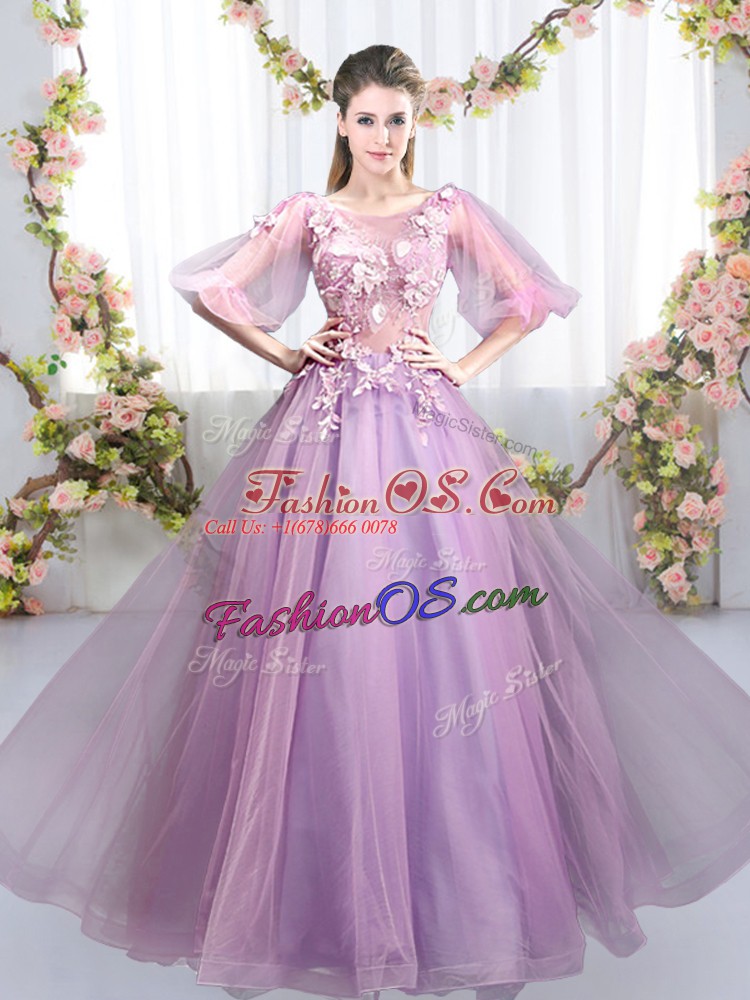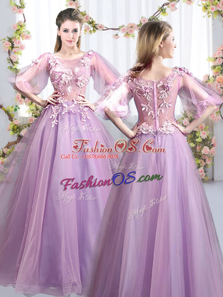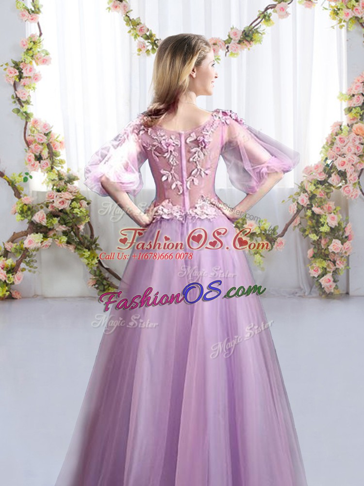 High Quality Lavender Scoop Neckline Appliques Quinceanera Court of Honor Dress Half Sleeves Zipper