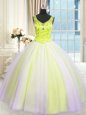 Home >  Quinceanera Dresses >  Pretty Quinceanera Dresses > High Quality Multi-color Ball Gowns Tulle V-neck Sleeveless Beading and Sequins Floor Length Lace Up 15 Quinceanera Dress