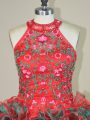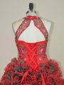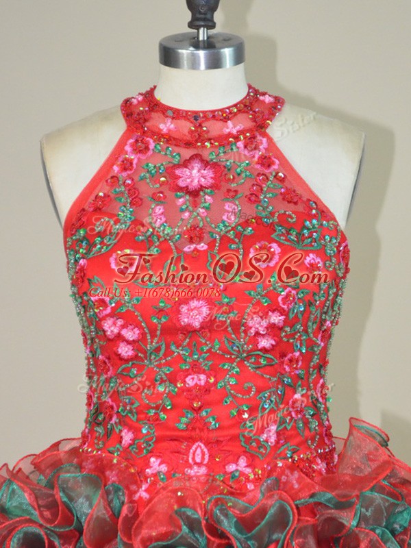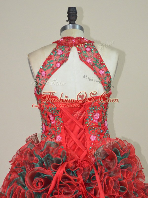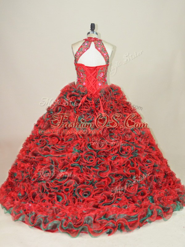 High Quality Multi-color Lace Up Halter Top Sleeveless Sweet 16 Quinceanera Dress Brush Train Embroidery